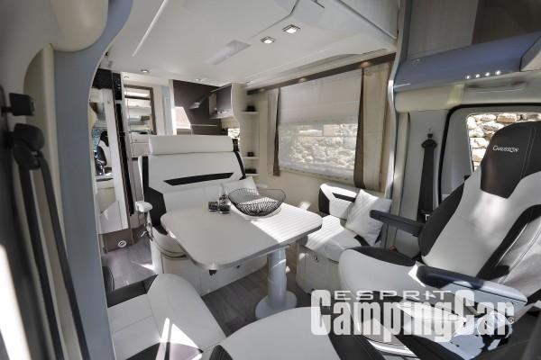 Ce profilé a tout pour plaire, encore plus en finition Welcome. Cette finition garantie un  niveau d’équipement riche (chauffage à carburant Eberspächer, radar de recul, lanterneau panoramique, éclairage 100% LEDS, finition luxe du lit de pavillon,  crédence lumineuse en cuisine, le matelas luxe du couchage principal, etc.). L’agencement innovant nous plait et pourrait bien être initiateur d’une nouvelle tendance à venir (Challenger adopte le même, Bürstner et Dethleffs sont également sur le coup). À cela, vous ajoutez la garantie étanchéité 7 ans grâce au procédé de fabrication IRP (retrouvez la vidéo explicative sur la chaine Youtube du constructeur : https://www.youtube.com/watch?v=Ef8oCBuQHkI), vous obtiendrez un profilé de qualité qui pourrait bien devenir l’un des best-sellers de Chausson.