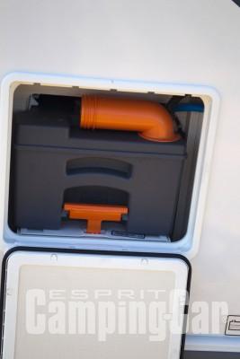 Ce 620 Welcome est ici posé sur le porteur Fiat Ducato, en châssis spécial camping-car. Il ne dépasse pas 7m (6m96 contre 6m99 sur le Ford Transit), un bon point même si sa largeur (2m35) est limite tout comme sa hauteur (2m89). De par sa finition Welcome, le 620 adopte une cabine au ton anthracite au charme évident. Cette couleur donne un caractère fort à l’ensemble. On apprécie particulièrement la grande soute arrière proposée avec trois grands portillons, dont un sur la face arrière. La manipulation des gros objets gagne en aisance et en simplicité. Certains sceptiques pourraient rapporter que trois portillons, c’est trois fois plus de chance de ramener de l’humidité dans la soute. Nous n’irons pas jusque-là tant le constructeur a œuvré pour limiter les infiltrations de ce type. Un regret, l’absence du nouveau « Technibox » qui équipe tous les profilés excepté le 620. Dommage.