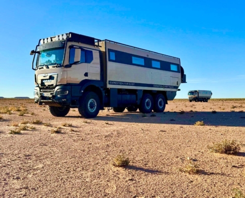 MAN TGS 12,4l 510ch – LxlxH : 9.90×2.47×3.85 – Poids : 18 tonnes – CU : 8 tonnes – Dimensions de la cellule : 7.40 – EP/EU : 500/140l – Réfrigérateur : 175l – Réservoir WC : 65l – Capacité solaire : 2100W – 4 batteries lithium-ion 230Ah – Chauffage :10.000 watts. Système de chauffage à eau chaude avec plancher chauffant – Congélateur : 2x122l –