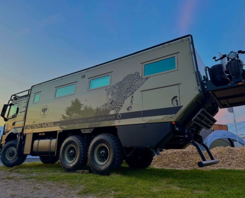 C’est aussi ainsi qu’on obtient le monstre du bitume et du tout-terrain, l’extravagant Global XRS 7400 Leopard 2.0. Ce n’est pas un camping-car classique, déjà par le fait rare qu’il est entièrement fait à la main dans l’usine de production du constructeur. C’est un refuge mobile, un objet de design réfléchi sur six roues – conçu pour les explorateurs du monde ayant les plus hautes exigences en matière d’esthétique, de fonctionnalité et d’indépendance.