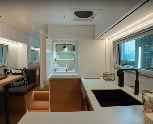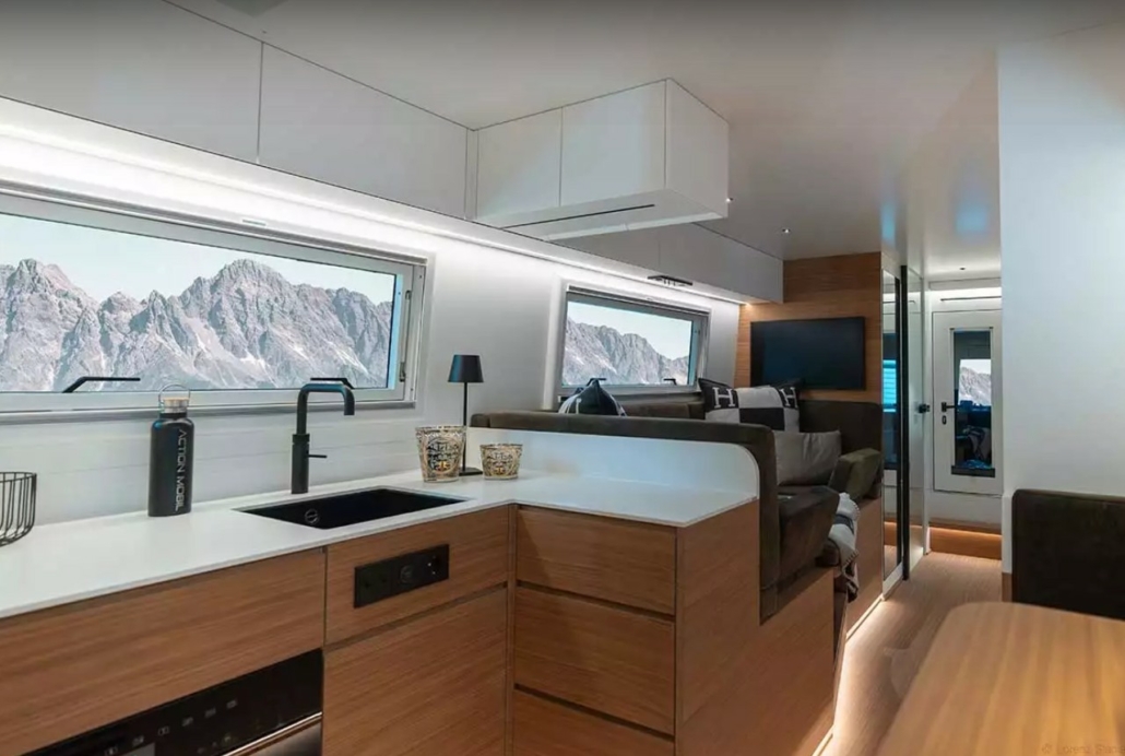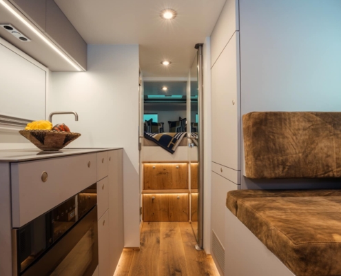 Pour Action Mobil, chaque détail est essentiel, chaque détail compte pour former un ensemble parfait. Dans cet habitacle, la chasse au superflu est actionnée, l’idée est d’aller à l’essentiel. Ainsi, l’espace de vie respire la clarté et la qualité – sans renoncer au confort ni à la fonctionnalité. Des matériaux habituellement réservés aux maisons de design haut de gamme ont ici été mis en œuvre sans compromis dans un espace compact.
