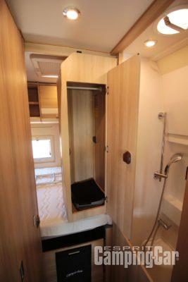 L’habitacle est bien pensé puisqu’il présente un grand salon pour quatre, une kitchenette fonctionnelle mais également un espace toilette surprenant dans un fourgon puisque le coin salle d’eau est totalement indépendant du coin douche. La douche s’équipe de la fameuse penderie pivotante Modul’Space qui offre un vrai gain de place ainsi qu’un grand rangement supplémentaire. De quoi partir à l’aventure sereinement.