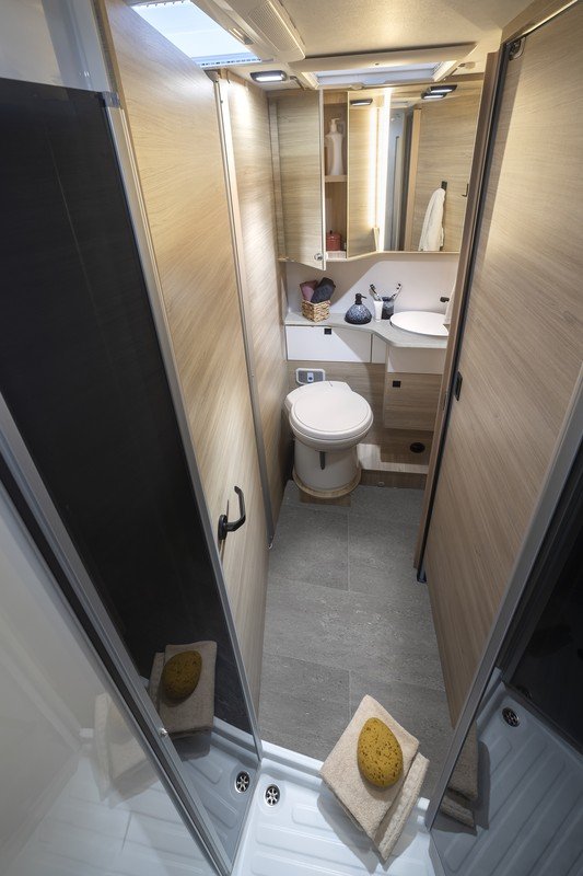 Dans l’habitacle, Challenger repense ses cuisines avec le passage à un réfrigérateur 84L (Thetford), avec un plan de travail agrandi (1530mm contre 1050mm), plus de volume de rangement et un éclairage par interrupteur infrarouge. Plusieurs modèles (V594, V594S) voient leur couchage plus large et gagner en confort tandis que l’espace toilette est plus fonctionnel.