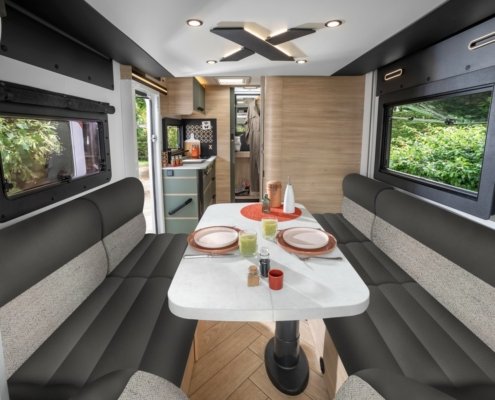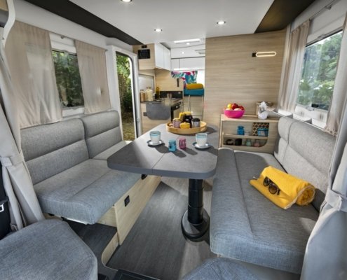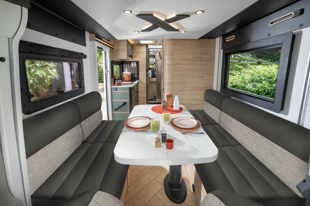 Avec des centimètres en plus, le S294 répond aux objectifs du constructeur, à savoir de rendre les lieux de vie plus fonctionnels, spacieux et confortables. Dans ce profilé, Challenger installe donc un salon avec banquette face/face, un schéma tendance et très prisé des utilisateurs. On tient ainsi facilement à quatre au salon sans aucune sensation de gêne.