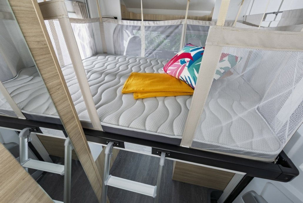 Sur ce nouveau plan, vous disposerez également, de série, d’un grand lit de pavillon, quelque soit le niveau de finition (Break Edition, Sport Edition). Ainsi, avec l’astucieux couchage transversal arrière dit « lit papillon », quatre vrais couchages sont posés.