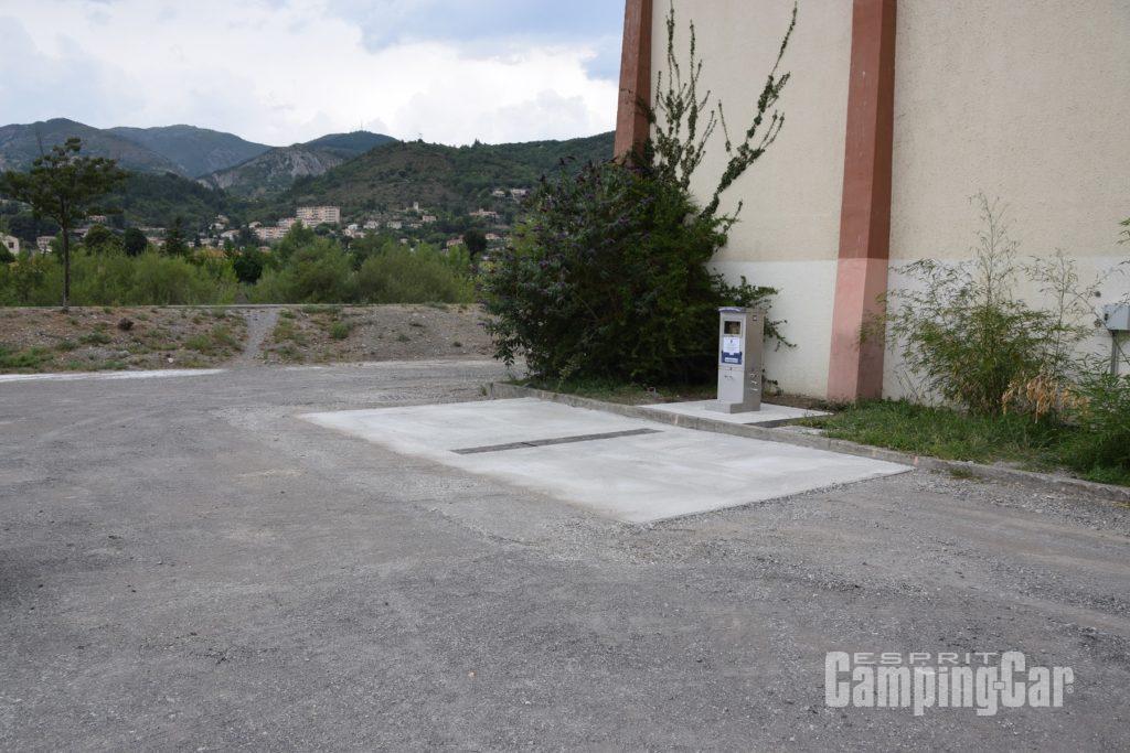Celle-ci se trouve Rue René Gassend, à côté de la Halle des Sports (route de NICE) sur le parking Espace Camping-cars Georges AUBERT et propose 20 emplacements. L’aire se trouve à 10 minutes à pieds du centre-ville en prenant la piste cyclable et piétons le long de la rivière La Bléone juste à côté du parking. A noter que, l’an prochain, le parking sera aménagé d’arbres et de parterres fleuris.