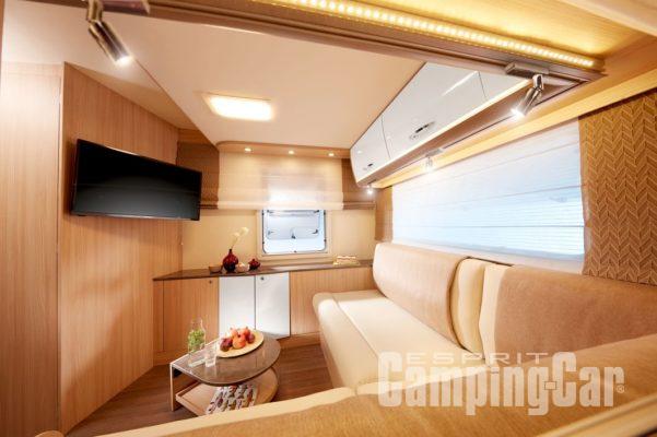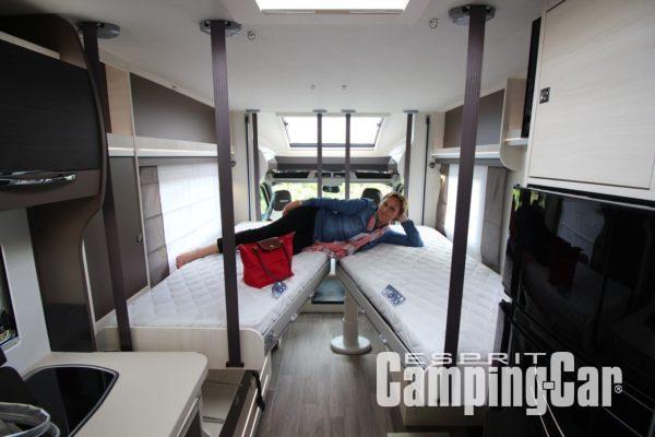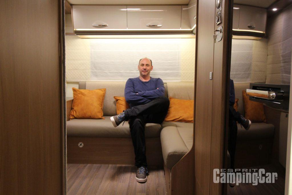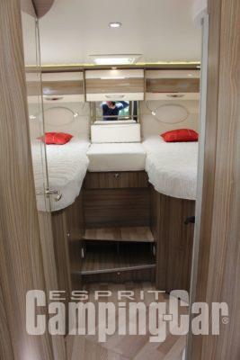 L’an passé, nous n’étions qu’aux prémices de l’explosion des solutions de chambre avec des lits jumeaux. Cette fois, c’est clair, quasiment tous les constructeurs s’y sont mis, y compris les français les plus traditionnels. On trouve des lits jumeaux classiques, d’autres qui se rejoignent par le centre, d’autres avancés pour laisser place à une grande salle d’eau arrière, mais aussi, l’une des grosses nouveautés de la saison, des lits jumeaux lit de pavillon (sur le Challenger 270 Mageo par exemple).