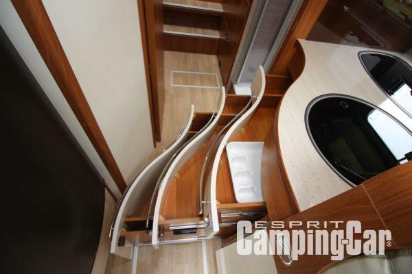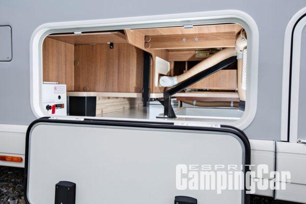 Cette nouvelle tendance apparait dans le catalogue d’Adria (et d’Elios). Le constructeur slovène a créé un slideout arrière permettant ainsi de gagner de la place à l’étape. Sur son Compact SCS, en déployant les 70cm du slideout, vous disposez d’un couchage lit central de premier ordre, le tout sur un profilé de seulement 6m25. Un gros coup de cœur.
