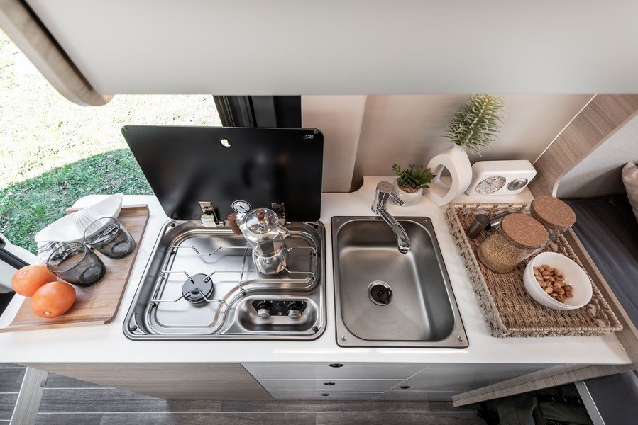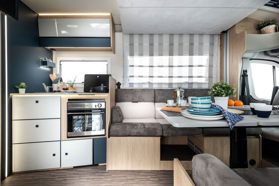Les changements ne s’arrêtent pas à ces détails. En cuisine, le plan de travail est désormais continu, sur un seul niveau. C’est plus fonctionnel à l’usage. Le réfrigérateur des Kyros Go voit son volume grimper à 84l et se dote d’une ouverture à 180°. Le constructeur s’est aussi concentré sur la facilité de déplacement dans ses Kyros Go en réaménageant la cuisine et dégager ainsi 9 centimètres pour le couloir.