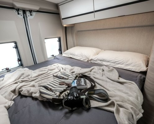 Sur l’ensemble des camping-cars de cette famille, la fixation Isofix est proposée de série, un excellent point. Le profilé Horon 34XT est passé à la moulinette pour subir des retouches très intéressantes. Par exemple, le constructeur supprime le compartiment à gaz du garage, un détail qui permet d’agrandir la trappe du coffre (175×80 désormais) et donc de vous faire gagner en maniabilité au moment de ranger vos affaire. Autre incidence, vous disposez ainsi de plus de volume de charge dans le coffre. C.I. pose désormais le chauffage Combi 4 Diesel de série sur son Horon 34XT. Enfin, dans l’habitacle, les placards de pavillons ont été repensés permettant une meilleure descente du lit de pavillon.