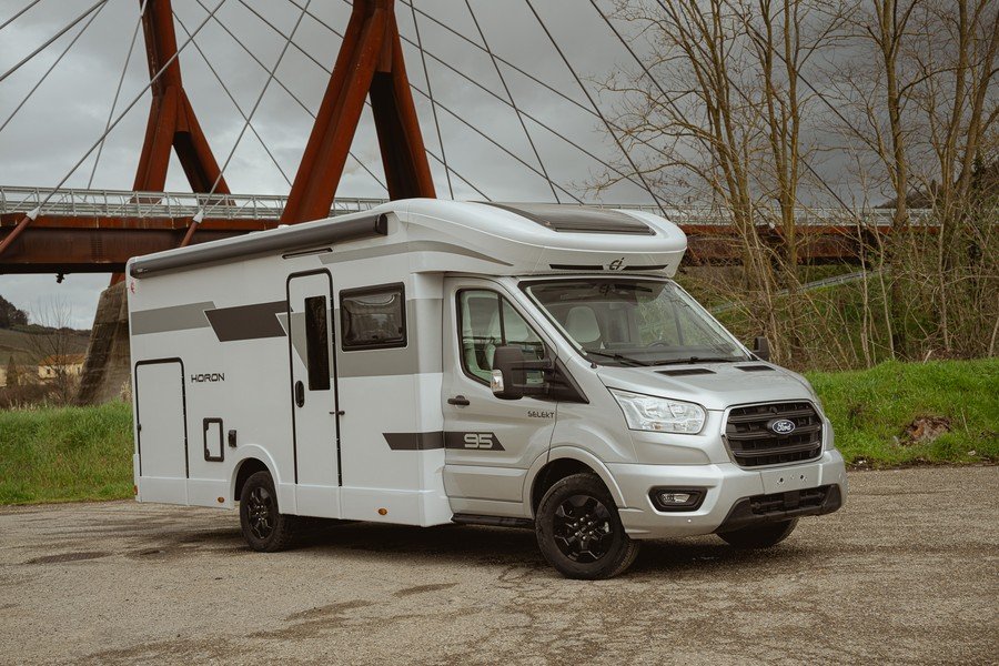Extérieurement, les changements se remarquent dès le premier regard avec des nouveaux graphismes sur les parois extérieurs qui lui donnent un look plus sobre que par le passé. Cette année, le constructeur opte pour des teintes grisées pour vous accompagner. A noter que les capucines de cette famille Horon ont été redessinées afin de rendre les lignes extérieures plus fluides tout en améliorant leur aérodynamisme. Les capucines sont posées sur le Fiat Ducato tandis que les profilés de cette famille restent sur le Ford Transit 130ch.