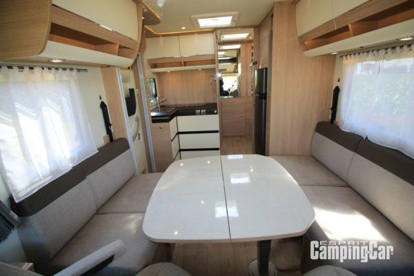 Nouveau venu au catalogue du constructeur français, cet intégral compact (6m55 de long seulement) est une très belle surprise. Compact donc, porté sur le Fiat Ducato, ce FC650 propose un maxi-salon avec deux banquettes face/face. Ce salon est transformable en couchage deux places (130/100×200). Ce qui fait ainsi quatre couchages.