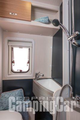 L’arrière est réservé à l’ensemble salle d’eau et les couchages superposés. Cela permet ainsi de disposer de quatre solutions de couchage et de partir sereinement en vacances avec vos enfants. Un excellent point. Enfin, afin de garantir une isolation optimale, Knaus adopte une solution sans ponts thermiques, ainsi qu’un plancher en panneau sandwich EPS 12mm, un contreplaqué en peuplier 8mm et un revêtement PVC.