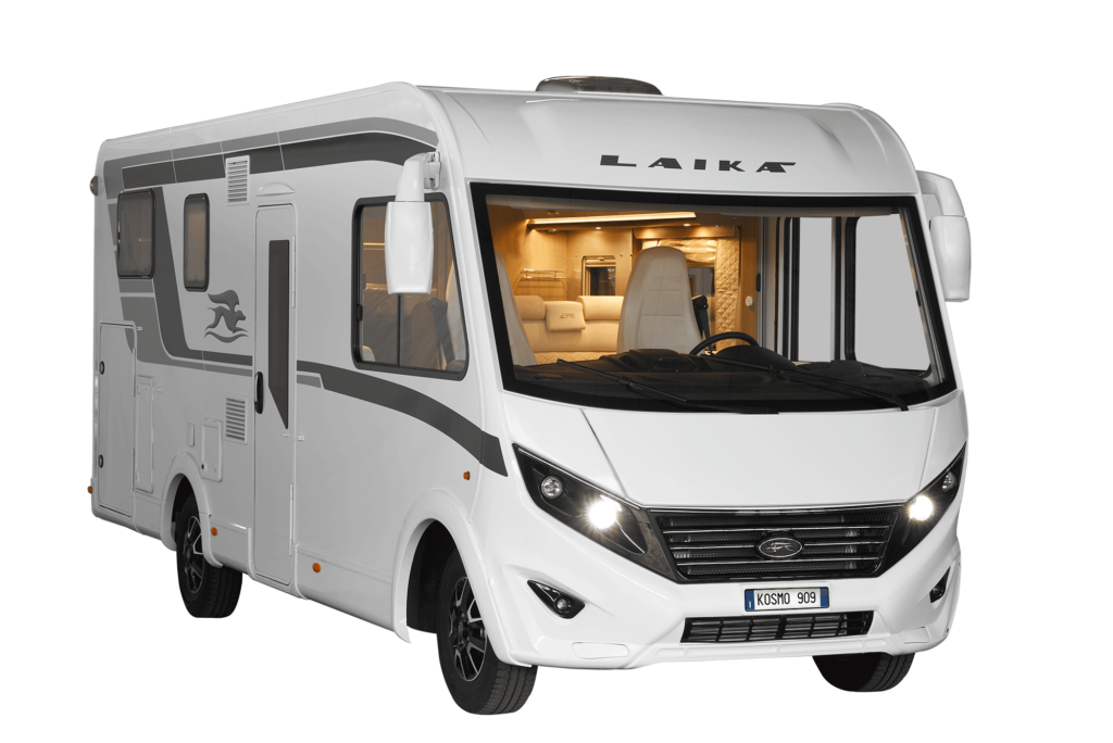 Malheureusement, il faudra attendre encore un peu avant voir ce modèle puisque seul le Kosmo 909 a été dévoilé. Ce dernier présente un salon pour cinq, une très belle kitchenette et des lits jumeaux sur soute à l’arrière. Comme toujours, Laika fait fort puisque le design intérieur de ces deux intégraux Kosmo s’est enrichi de matériaux innovants et d’élégantes associations, comme la table et le plan de la cuisine en stratifié couleur bronze « effet pierre », qui se marient parfaitement avec les teintes chocolat et crème des profils en aluminium et des meubles hauts. Ces derniers ont des poignées en métal au design exclusif Laika.
