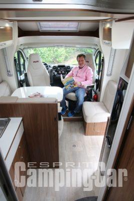 Le V630FX s’inscrit dans cette opération « Nouveautés ». Son agencement propose des lits jumeaux en chambre mais aussi la nouvelle salle d’eau développée par le constructeur avec le WC coulissant et la vasque rabattable. Le gain de place est séduisant et permet de disposer d’un salon spacieux tout en conservant un espace salle d’eau fermé et confortable. On apprécie également la présence des baies affleurantes, mais aussi d’une saine isolation (20mm de fibre de polyester et revêtement intérieur aluminium).
