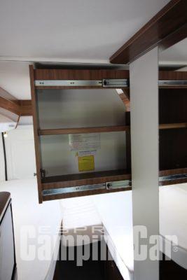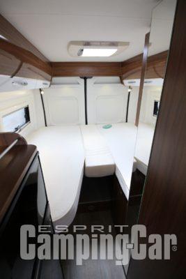 Pour bien faire, le constructeur présente, par ailleurs, une nouvelle implantation, le P706GJ en finition Essentiel. Sur 6m95 seulement, ce profilé accueille des lits jumeaux en chambre (une forte demande actuellement), un espace salle d’eau traversant avec double fermeture et surtout un lit de pavillon deux places qui fait la différence par rapport à la saison précédente.
