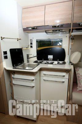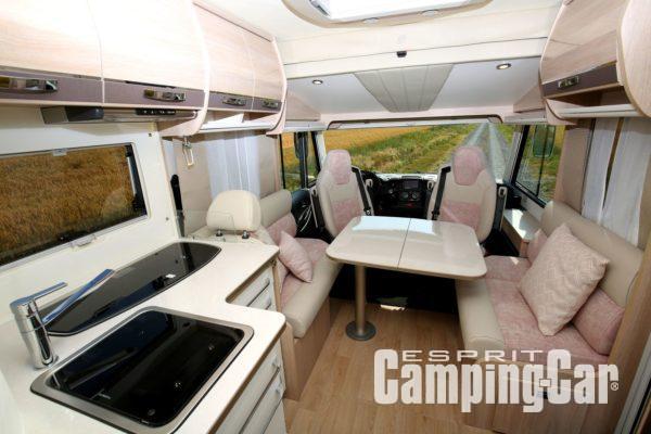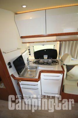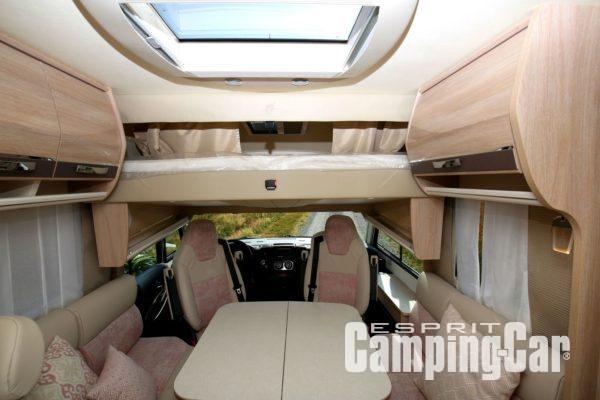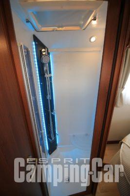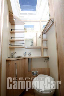 On aime ce salon avec ses deux banquettes face-à-face confortables et accueillante. Avec un tel salon, on peut recevoir 6 personnes en tout à table, tout en gardant un œil sur la kitchenette en mode « ouverte » sur le salon. A l’arrière, Rapido prône pour un lit central king size (160×198) ainsi qu’une très belle salle d’eau privative. Bien équipé, cet intégral est proposé à un prix de base de 64.900€. On vous le dit, best-seller assuré !