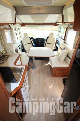 Au salon, Rapido mise une nouvelle fois sur les banquettes face-à-face (et la sellerie Paris) tandis que la chambre s’équipe d’un grand lit central king size (198×160) réglable électrique en hauteur (30 cm d’amplitude). De série, le constructeur équipe son intégral du chauffage Truma Combi CP Plus associé au module moderne Truma iNet. En option, vous pouvez choisir le chauffage ALDE. De série, toujours, cet i96 Distinction Premium Edition s’équipe du Pack Executive (caméra de recul avec vision nocturne et son, station multimédia Pioneer, IBS, surmatelas mémoire de forme, commande radio à partir du lit, etc…).