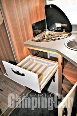 On note l’arrivée du système de commande Truma Inet, des prises 230 V et USB tandis que la TV 21,5 pouces en chambre avec parabole Oyster 65 cm est en option. Idem pour la moustiquaire de porte, le réservoir d’eau grise chauffé et le panneau Truma CP+ avec Inet : un véhicule à la carte !