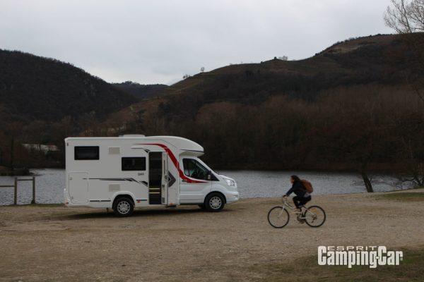 Ford Transit – 2l 130ch – LxlxH : 6.39×2.31×2.92 – PCG : 4 – PC : 4 (+1 option) – PR : 5 – 3,5T – CU : 630kg – Réfrigérateur : 140l – Chauffage : Utilisable en roulant