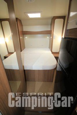 A l’arrière, en passant les quelques marches, vous trouvez un lit central (135×188) posé sur un sommier à lattes. Le retour discret du constructeur risque bien d’attirer du monde.