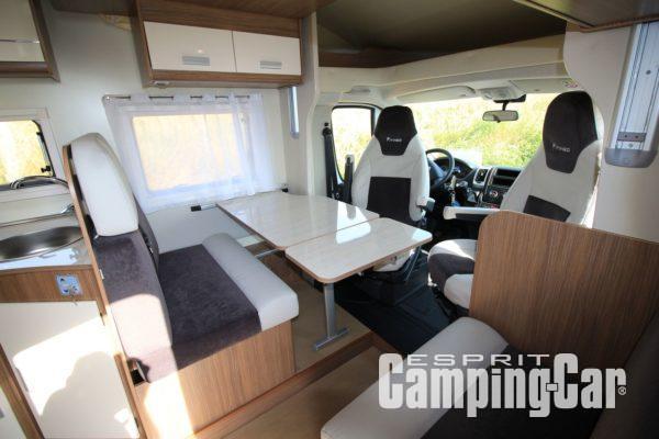 Le PM 740 est celui qui nous semble le mieux taillé pour le marché français. S’il mesure 7m35 de long, son positionnement tarifaire pourrait bien inquiéter les spécialistes des segments d’accès. A l’avant, le salon peut recevoir quatre à cinq convives. Itineo installe au-dessus un lit de pavillon à commande électrique offrant deux couchages de plus (140/110×200).